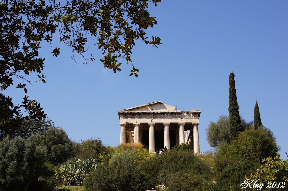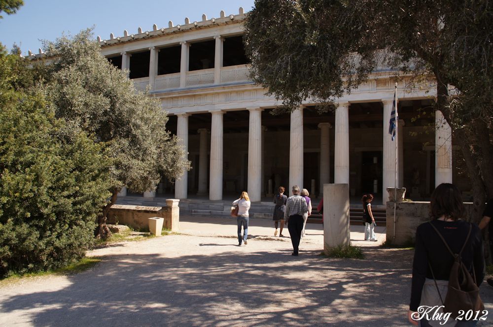 From the Acropolis Hill we headed down and walked the old road to the Agora which sits at the base of the Acropolis to the northwest. We could see the Agora and one of the few buildings that is mostly intact - the Temple of Hephaestus - from the hill. Walking along the road and down the hill we had the sense of the intense history of this ground. Amazing and slightly overwhelming at the same time. What is sad is that many of the structures, here for thousands of years, are marked with graffitti. We are here to see and appreciate the history and the people who lived here many years ago. The people of today's Greece treat their home the same as we see in large american cities with no sense of respect.