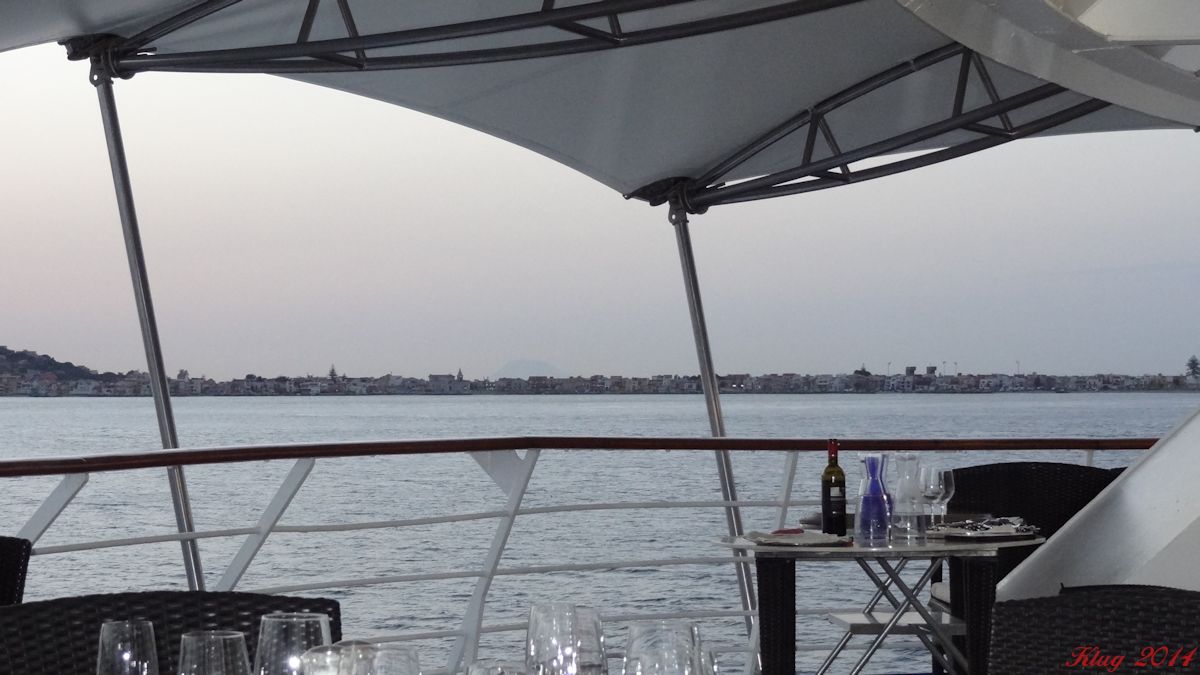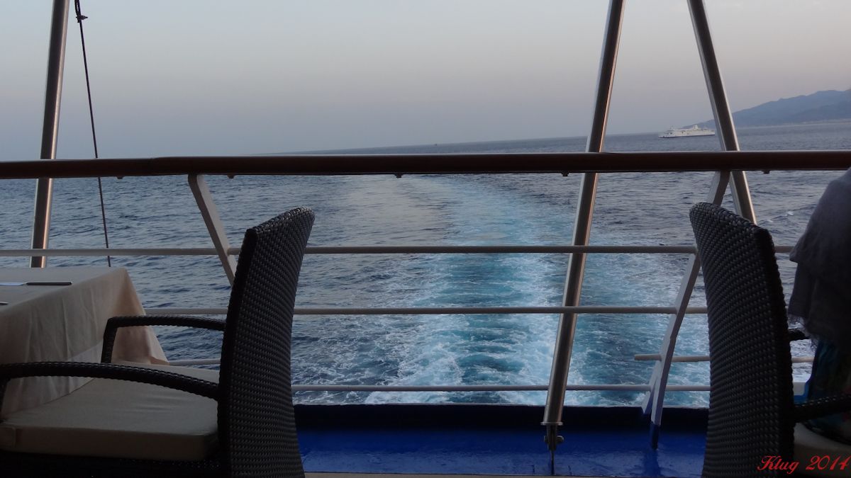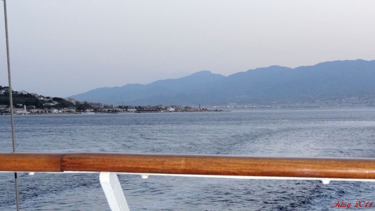 Day at Sea As planned, Sea day began prepping for packing, but only after a massage for Carey that morning! We spent most of the day visiting with our friends. Late in the afternoon Antonio, head maitre'd asked where we were having dinner that evening. We were traveling through the Straits of Messina that evening, something only the small ships can accomplish. We had not planned and were just going to eat in the Restaurant that evening. When we returned to our room to start cleaning up we had a reservation card on the door - reservations in La Terrazza! When we arrived at the restaurant we were taken to the center table on the back deck with full view of our traverse! Antonio had gone out of his way to take care of us! We were very appreciative and thoroughly enjoyed the view. Meeting up with the rest of the "gang" of new friends we finished the evening in the lounge looking forward to Sorrento the next day!