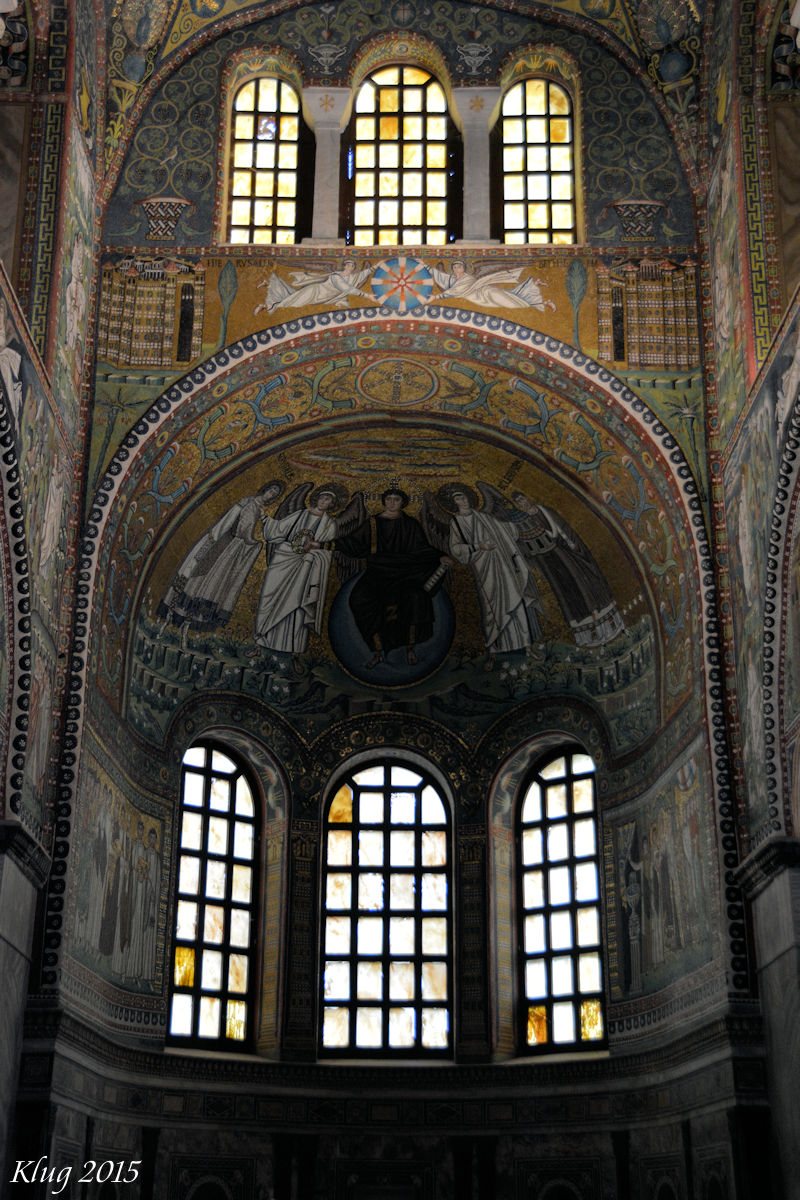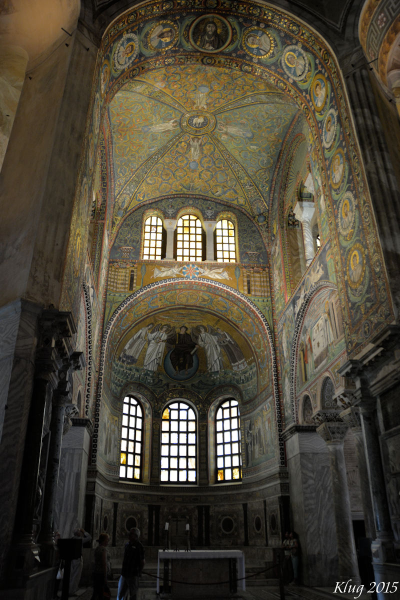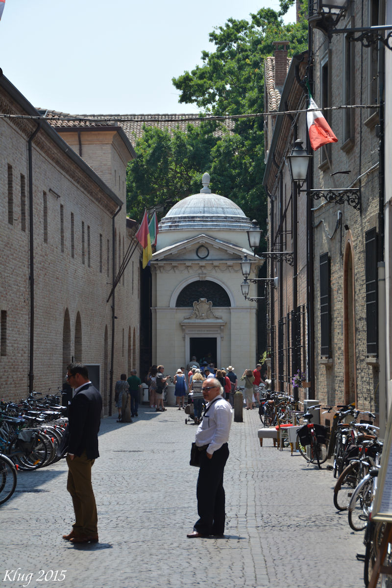 11 June 2015 - We arrived at the port for Ravenna early in the morning. Randy had discussed with other people on Cruise Critic about the ability to walk to town. The answer is a strong No! It's about a 20 minute drive by bus through some busy areas, along a river, and finally to town. Fortunately Silversea provides a shuttle in areas like this where it is not convenient to walk. We had scheduled an excursion to look at mosaics and then visit a workshop to make our own. Unfortunately we were notified that the tour was cancelled for lack of attendance. So we adventured on our own and saw exquisite mosaics, Dante's tomb, old churches and enjoyed a wonderful visit. Wandering through the sites on your own and at your own speed is the best way to enjoy Ravenna. We did not miss being on a guided tour. Here's a little more information about the sites we visited in Ravenna and some photos: San Giovanni Evangelista - San Giovanni Evangelista is a church in Ravenna, Italy. It was built in the fifth century AD by the Roman imperial princess Galla Placidia. In the Middle Ages the Benedictines annexed to it an important monastery. In the 14th century both the church and the monastery were renovated in the Gothic style: of that intervention the portal is visible today. In 1747 the church was almost entirely stripped of its mosaics; the only remaining are two fragments of the original 5th century floor, with the first recorded Christian use of hooked crosses. Other mosaic fragments found under the bombs belong to 13th century floor and depict the Fourth Crusade and the funeral of a fox. Two of the four bells dates 1208. Heavily bombed during World War II, the building was later restored.