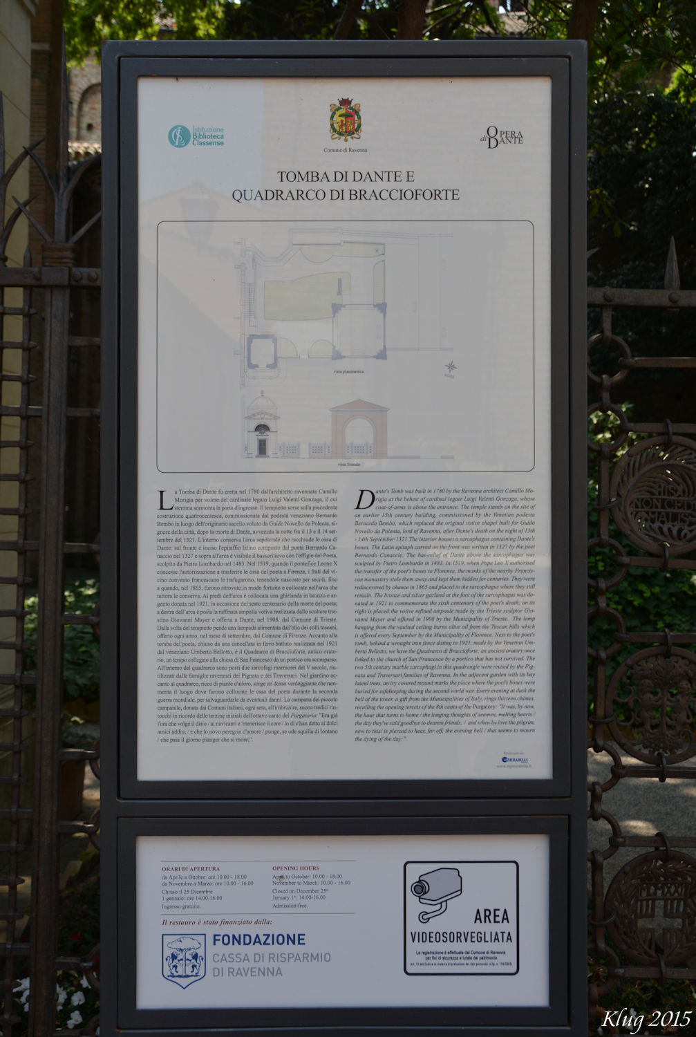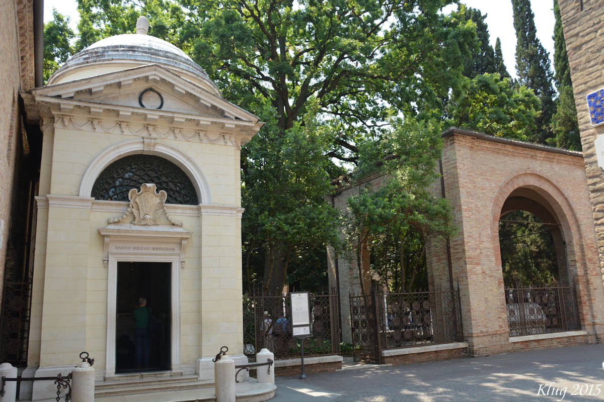 Dante's Tomb - Dante (degli) Aligheri was born in Florence in (probably) 1265. Political machinations later in his life resulted in his being exiled from Florence initially for two years and then, because he did not pay the attached fine, pretty much forever. Why? Because if he returned to Florence without paying the fine he could be burned at the stake. The city of Florence only rescinded that sentence in 2008.
