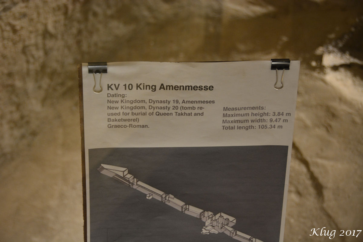 Valley of the Kings An amazing stop and almost worth the whole trip! Valley of the Kings was incredible. Unlike the visits at the Giza Plateau or Petra, the Valley of the Kings was immaculate, clean, and quiet. You had to run a small gauntlet of souvenir sellers at the main entrance but once you were in the valley itself it was quiet, clean, and almost reverent. Amazingly it felt very uncrowded and left to my own I could have wandered for hours in the valley. You can visit several of the open tombs in the valley. The count seems to change periodically based on what repair and conservation work is being done, but there are approximately 10 to 12 tombs open to the public. A couple of catches here. Not all of these tombs are open at the same time. Not counting the tomb of Tutankhamun only six tombs are open on any given day. I assume they rotate those based on exposure to the elements, limiting the impact of visitors, and staff limitations. The further limitation is that your admittance ticket only allows you to visit three tombs not counting Tutankhamun’s tomb which requires an additional fee but is still counted in your three tomb limitation. I’m guessing you could go back and buy a second admission ticket and visit another three tombs but we had limited time and I didn’t ask or check to see if that was possible. I’m still not totally sure we did the right thing but we decided not to buy the extra ticket and visit Tutankhamun’s tomb. I’ve seen dozens and dozens of pictures over the years of Tut’s tomb and we had to balance that out against dropping one of the other tombs. The Egyptologist escorting us really recommended we visit the three tombs she’d picked out as she thought they were the best open in the valley that day. She also said Tutankhamun’s tomb was really quite rudimentary in comparison to the others. She reminded us that Tutankhamun apparently died well before he was expected to and that his tomb had not been completed. Indeed his tomb actually may have been initially started for another unknown royal and was hastily converted for his burial. I do want to point out a big change that has been made in the Valley of the Kings. For an additional fee you are now allowed to take non-flash pictures inside all the tombs with the exception of Tutankhamun where no photography is permitted. This is a recent change made in early November 2017 and in fact it had only been allowed a matter of a week or so when we visited. Many tombs still had the “No Photography Allowed” signs up. To that point the photographs below are ours. A little note about the numbering the Valley of the Kings tombs. While there have been a number of different numbering systems over the decades today they are numbered in the order that they were discovered, not where they are in the valley itself. At present there are 64 suspected or known tombs with the valley number KV 1 through KV 64 with a possible unverified KV 65 still be explored. KV 2 Rameses IV