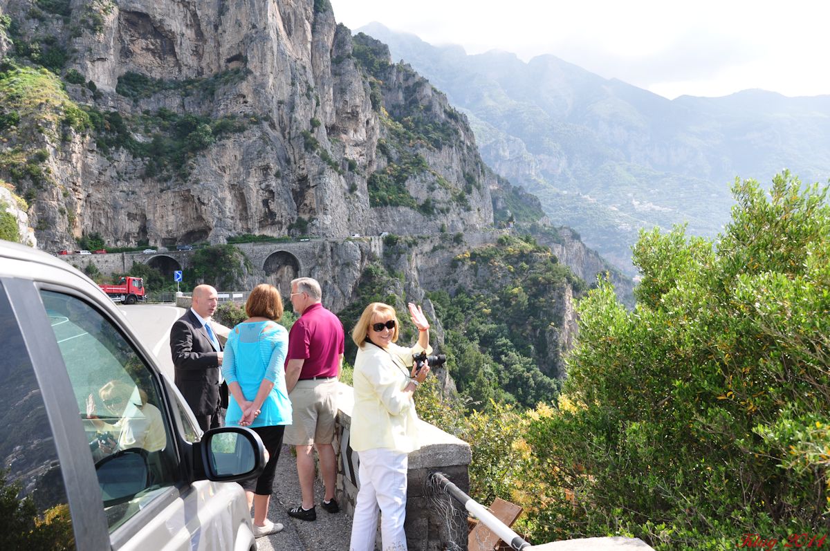 We had scheduled an Amalfi coast tour with AP Tours and asked David and Lynn to join us. We spent the day driving along the coast stopping in Positano, Ravello, and Amalfi with lunch in the lunch town of Pontone di Scala. Our driver was memorable - mostly for two reasons - he managed to not wreck the car and he constantly said "Mama Mia"! We thought that was just an affect for us Americans, but yet in each town we visited, many of the locals used that as an exclamation of sorts.