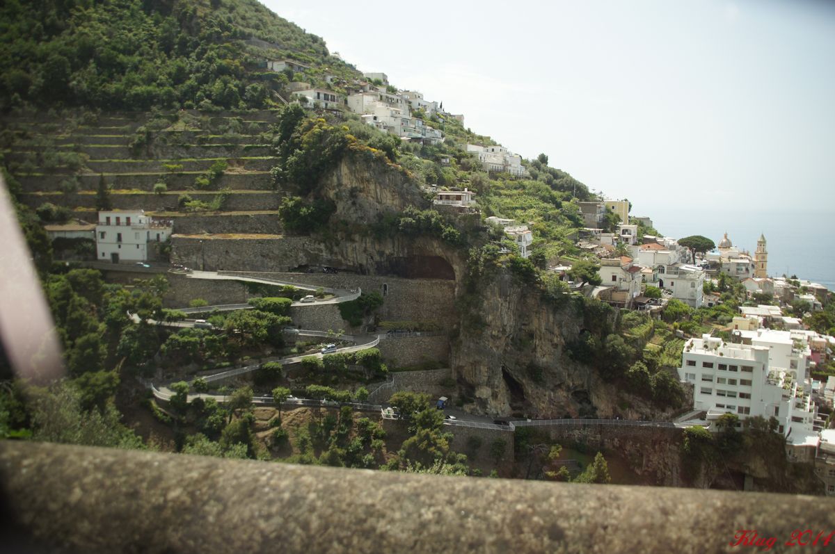The Amalfi Drive (connecting Sorrento and Amalfi) is a narrow road that threads along the high cliffs above the Tyrrhenian Sea.