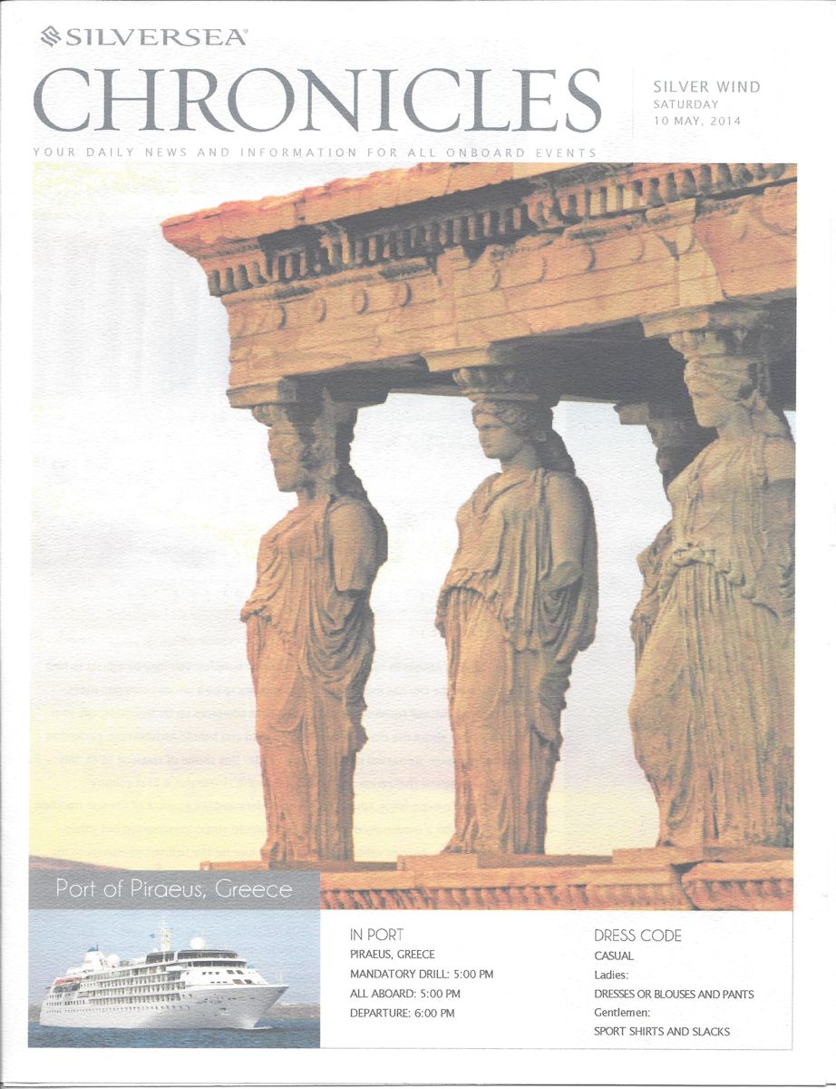 We returned to the Silver Wind on 10 May 2014. Waiting at the end of the steps up to the ship was Colin Brown, the cruise director. We sailed with him and Captain Palmieri in 2012 and remembered him well. While I don't think he recalled exactly, he did recognize us and this started a wonderful dialogue with him throughout the cruise.