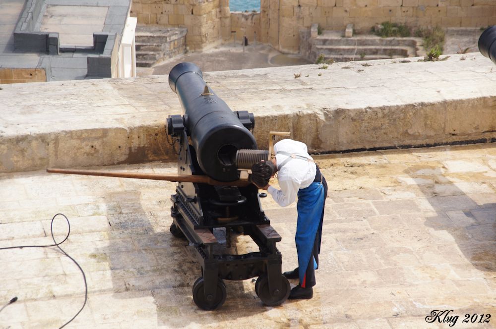 We departed the ship a little before noon to take our ship tour "Treasures in the Fortress City". The tour was a wonderful walking tour through the city with stops at certain key sites and visits to the National Museum of Fine Arts, St John's Co-Cathedral, and Casa Rocca Piccola. This provided us an opportunity to really see the city and the architecture. Many of the buildings were built in the 1600's by the Knights as they established their churches and homes for each country they came from originally. The city is a World Heritage site and a marvel to wander through. Now that we are back we see that this is another place you could spend a number of days visiting and exploring. Could be another trip if we win the lottery! As we began the walking tour after being driven up to the top of the city in a van (thank goodness!) we went to the Upper Barrakka Gardens and looked out over the harbor at Forts St Michael and St Angelo on the opposite site of the harbor. We had just missed the ceremonial firing of the cannons at noon, but we did get to see one of the cannons being cleaned! The gardens is a lovely place to just sit and enjoy the breezes. Then it was on down through the town heading to the museum, our first stop.